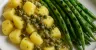 Salada de mandioquinha com vagem grelhada e molho de alcaparras