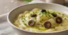 Abobrinha grelhada com alho e molho de azeitonas verdes